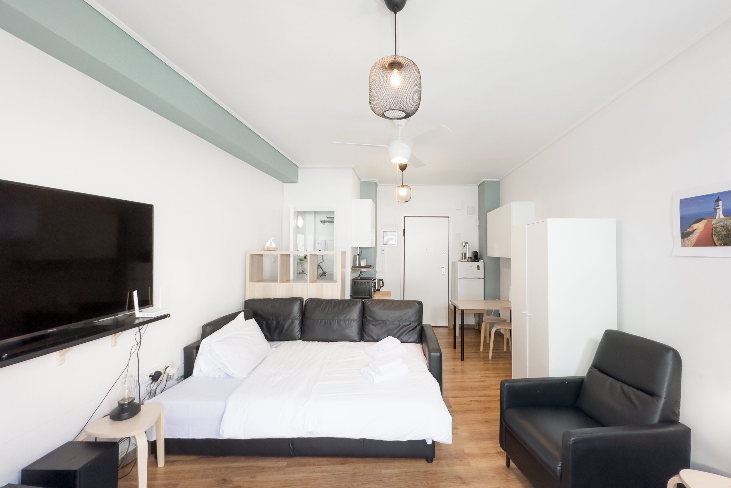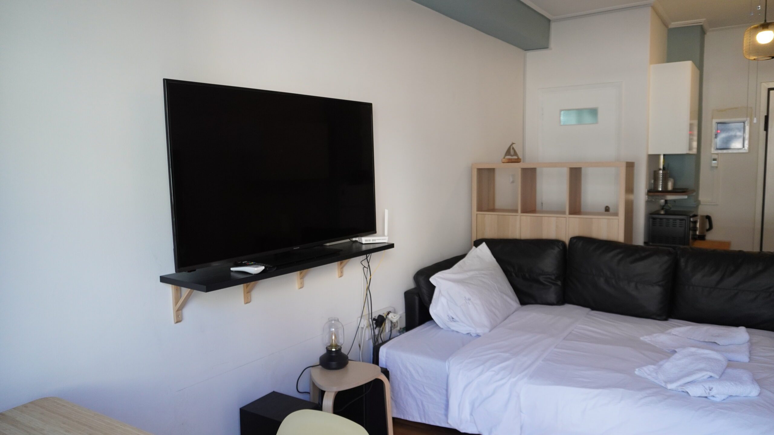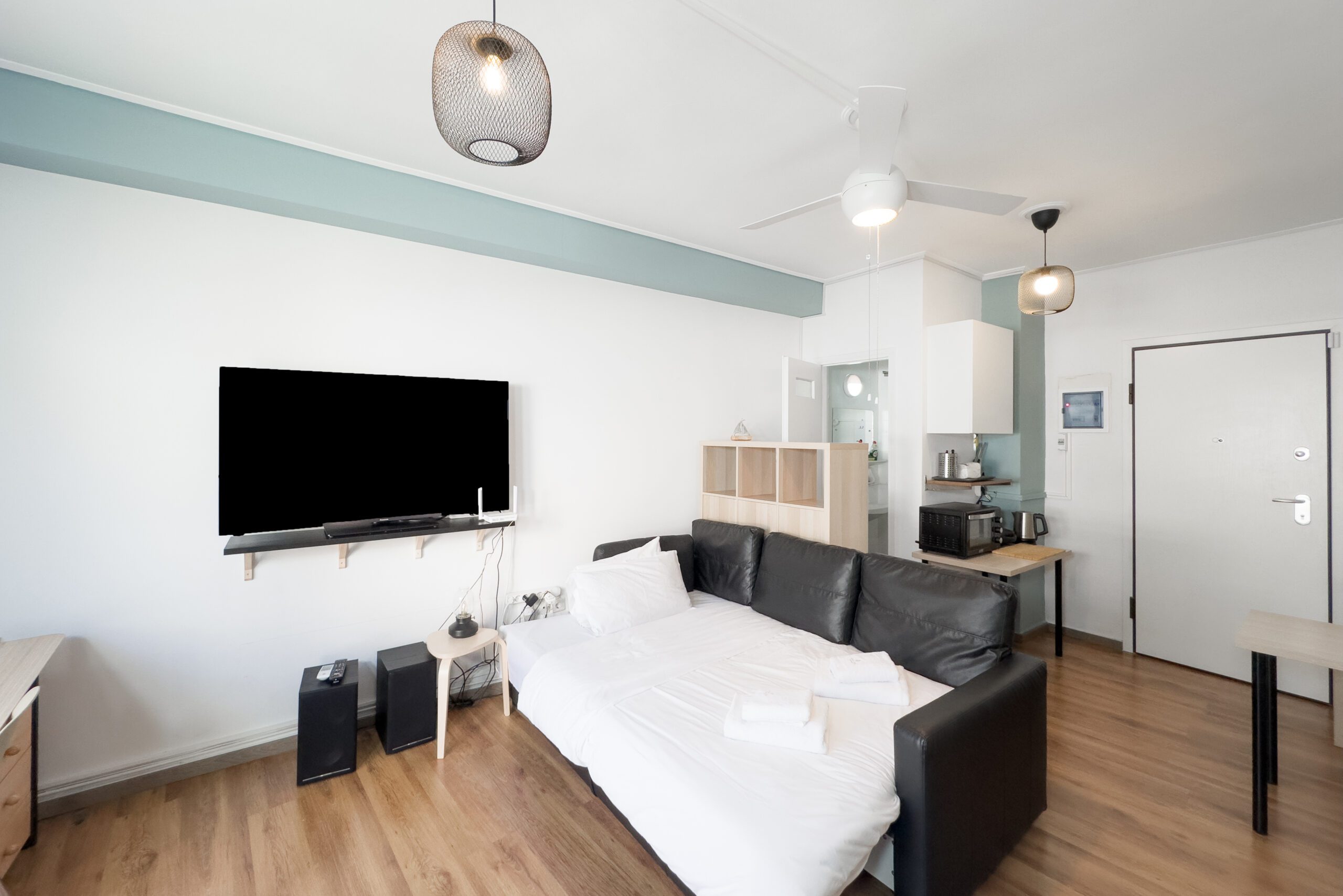 Για τη διασκέδασή σας, χαλαρώστε μπροστά στην τηλεόραση ή μείνετε συνδεδεμένοι με το γρήγορο WiFi μας (200 Mbps). Είτε θέλετε να δροσιστείτε το καλοκαίρι είτε να μείνετε ζεστοί το χειμώνα, το στούντιο διαθέτει κλιματισμό και θέρμανση για την άνεσή σας.