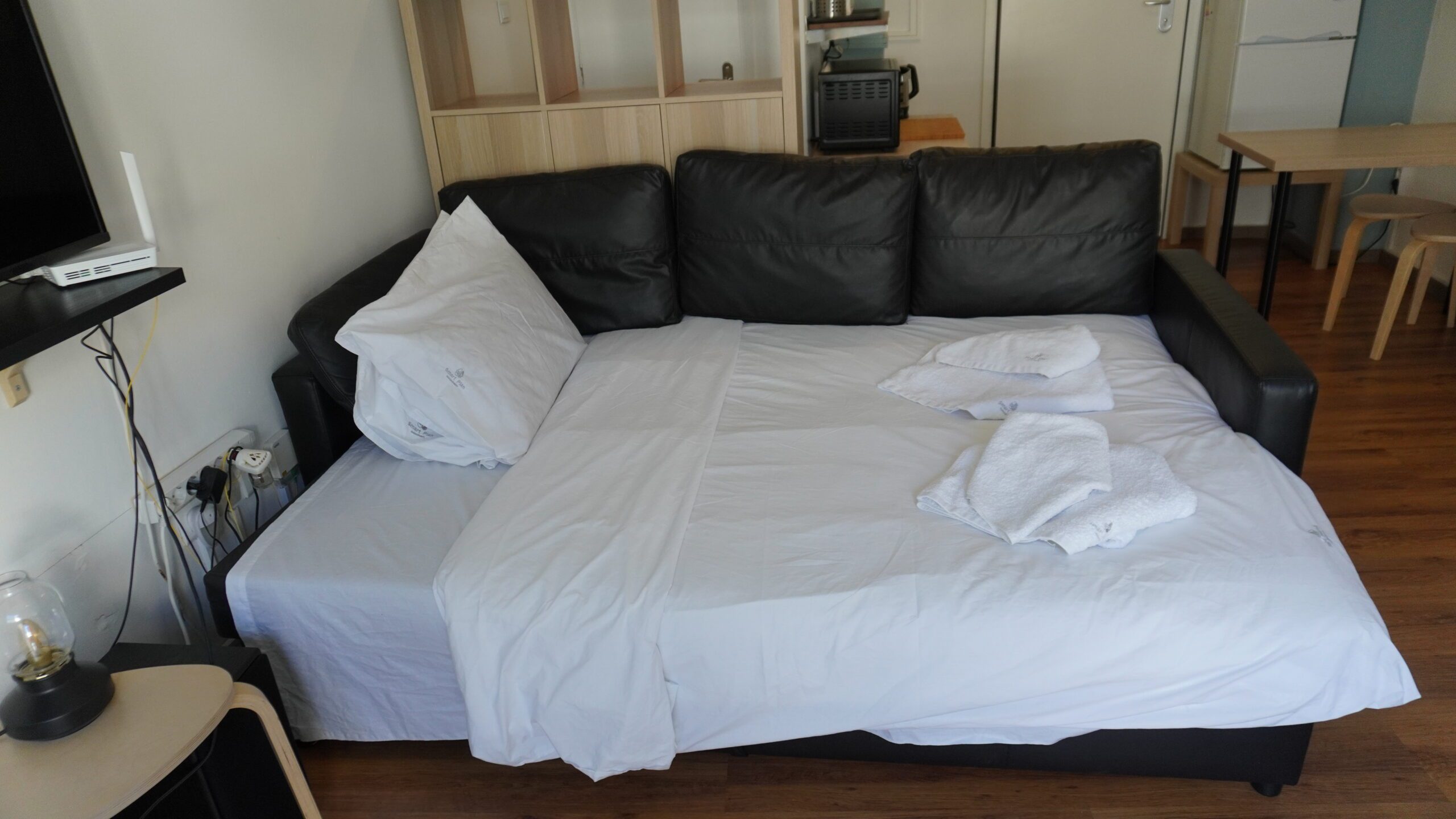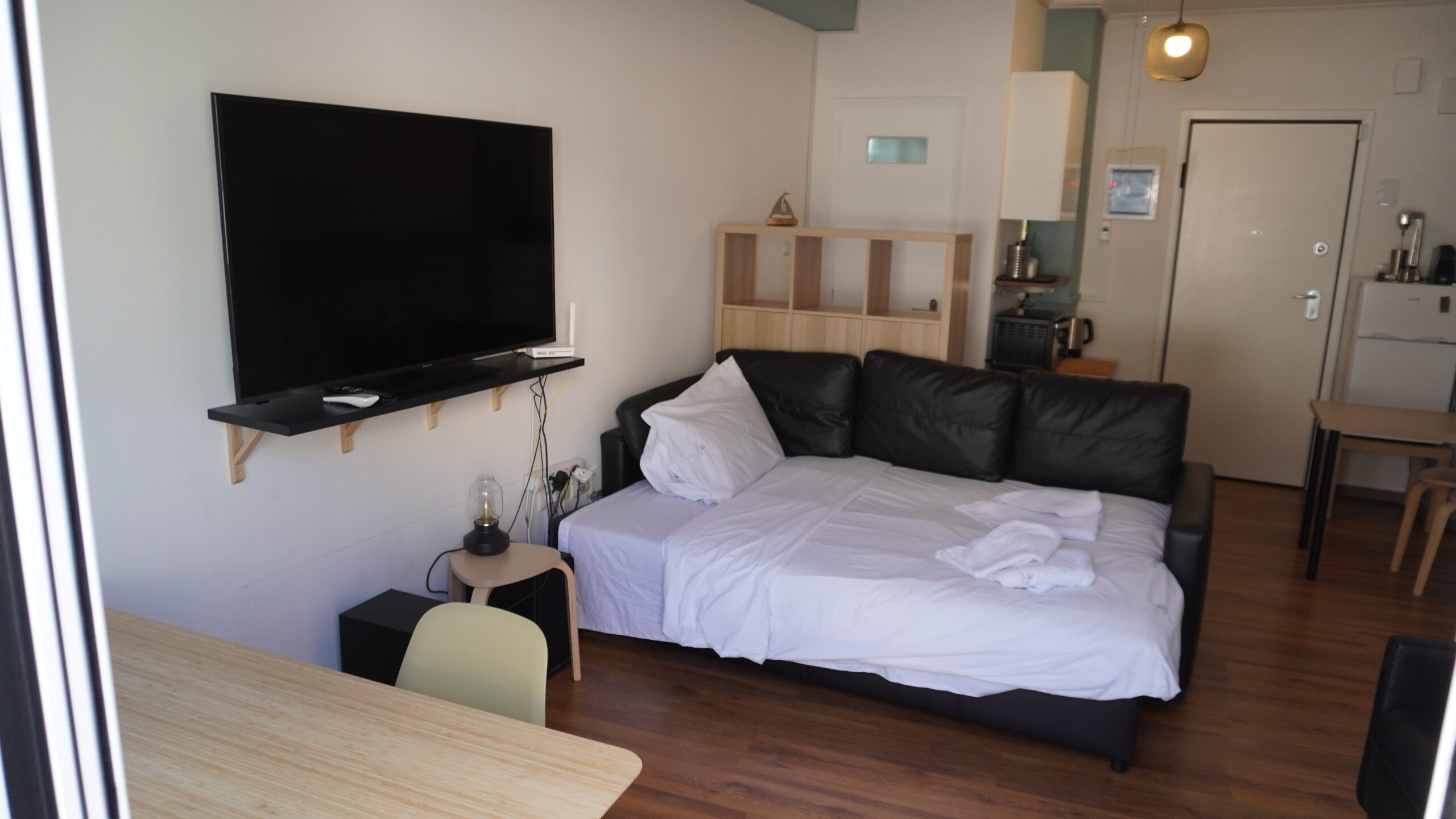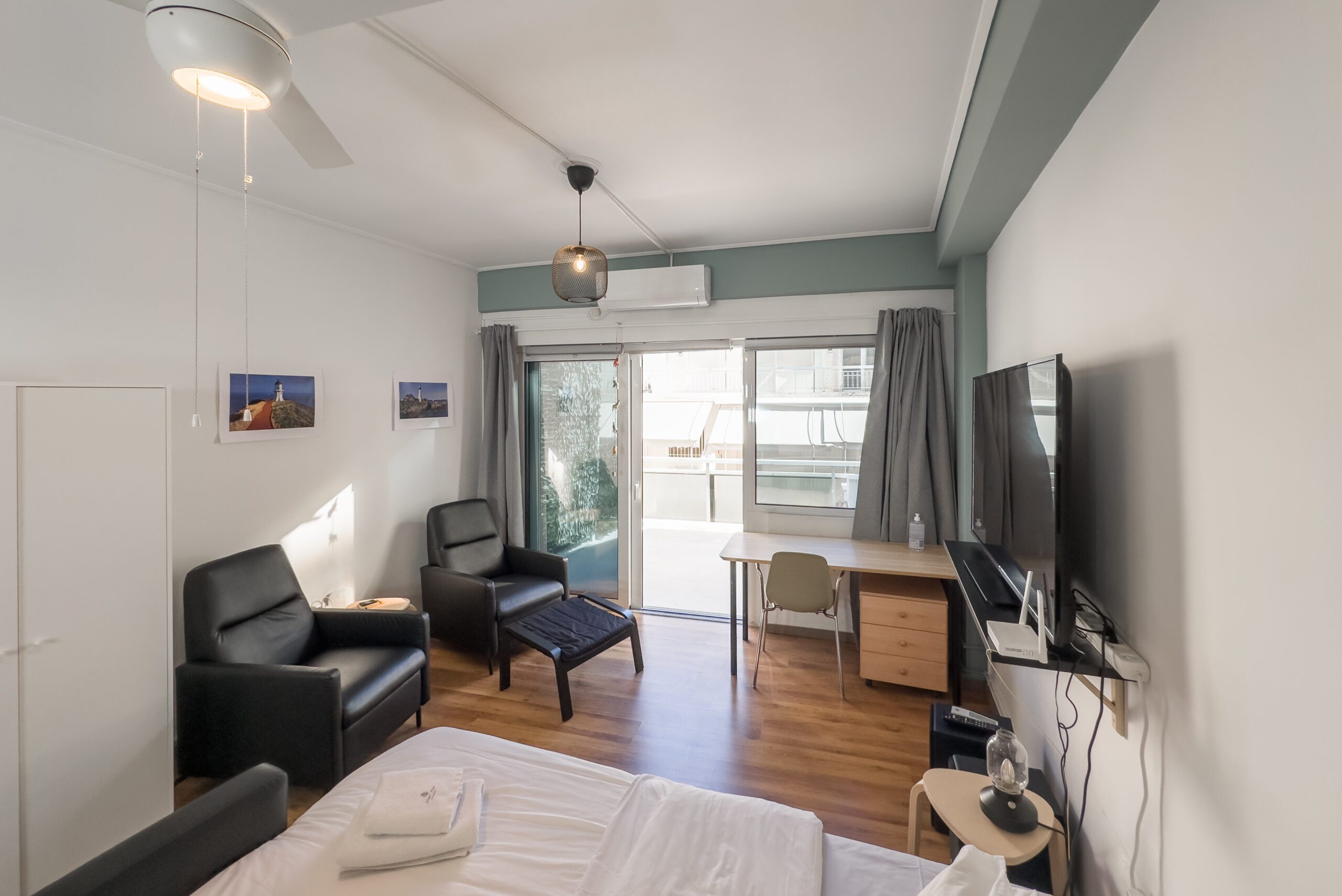 Για τη διασκέδασή σας, χαλαρώστε μπροστά στην τηλεόραση ή μείνετε συνδεδεμένοι με το γρήγορο WiFi μας (200 Mbps). Είτε θέλετε να δροσιστείτε το καλοκαίρι είτε να μείνετε ζεστοί το χειμώνα, το στούντιο διαθέτει κλιματισμό και θέρμανση για την άνεσή σας.